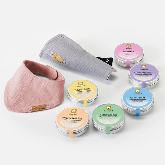 - Halstuch Mini (0-4 Jahre) und Gurtschoner mit integrierter Kräuterpad-Tasche