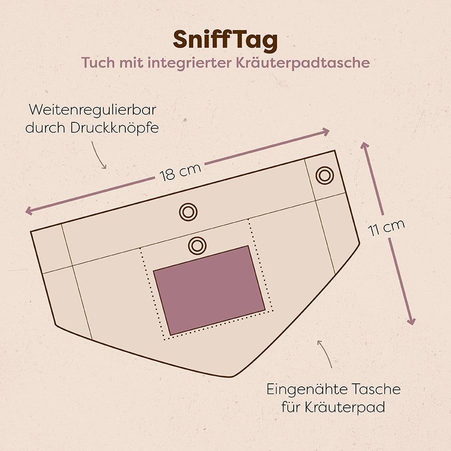 Die SniffTags verbreiten einen angenehmen, natürlichen Wohlfühlduft und unterstützen Deinen Hund dabei, entspannter zu bleiben. Perfekt, um eines zu tragen und das zweite als Reserve oder für ein weiteres Halsband bereitzuhalten.