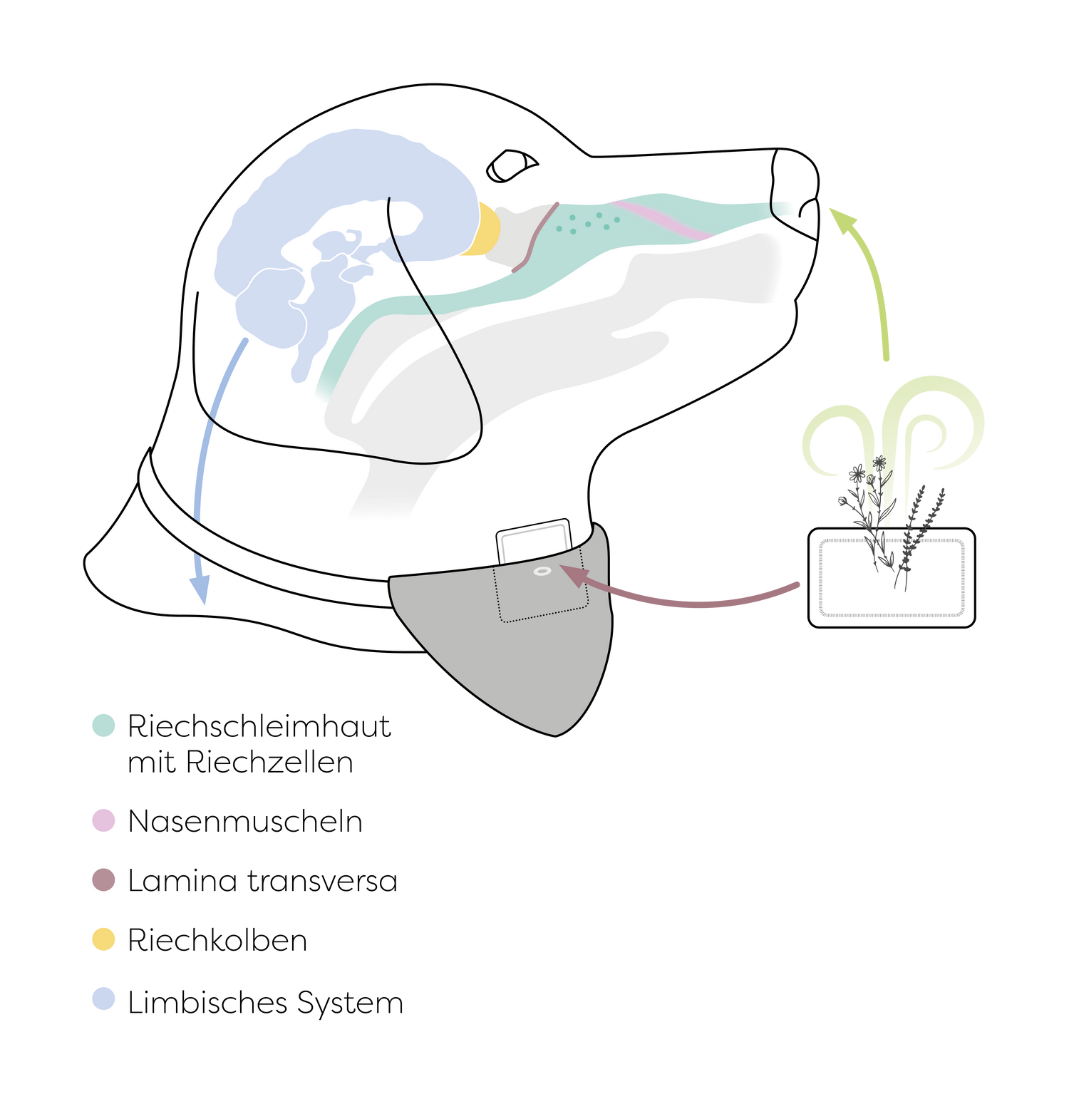 Die Duftmoleküle der Kräuter stimulieren über die Riechzellen das limbische System im Gehirn.