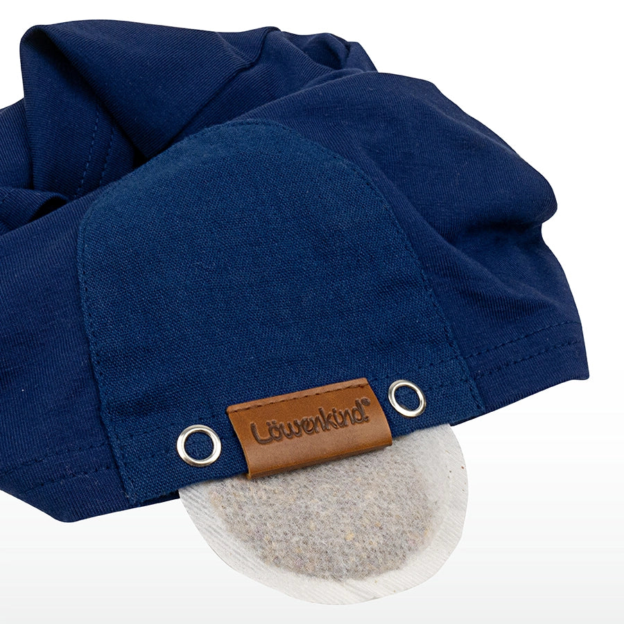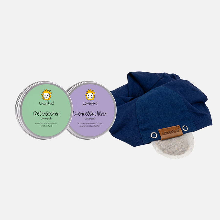 Das Kräuterpad wird ins Löwenkind Halstuch gesteckt. Dank der Körperwärme wird der Duft der Kräuter verstärkt.